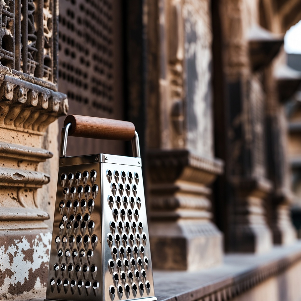 जब भी आप आराम से रसोई में चलते हुए किसी दराज़ से अपना भरोसेमंद चीज़ ग्रेटर निकालते हैं, तो आप कभी सच में अकेले नहीं होते। वही साधारण‑सा दिखने वाला औज़ार कुछ ही पलों में आपके चीज़केक या चॉकलेट बार को बारीक, छिड़कने लायक टॉपिंग में बदल सकता है। लगभग हर रसोई में मौजूद यह बेसिक टूल जितना सादा दिखता है, उतना ही काम का है।