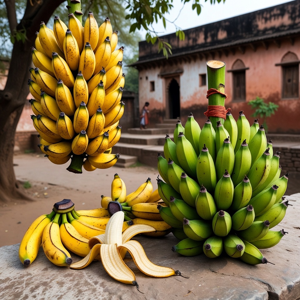 - बहुत ज़्यादा पका हुआ (काला–भूरा, गूदेदार) केला