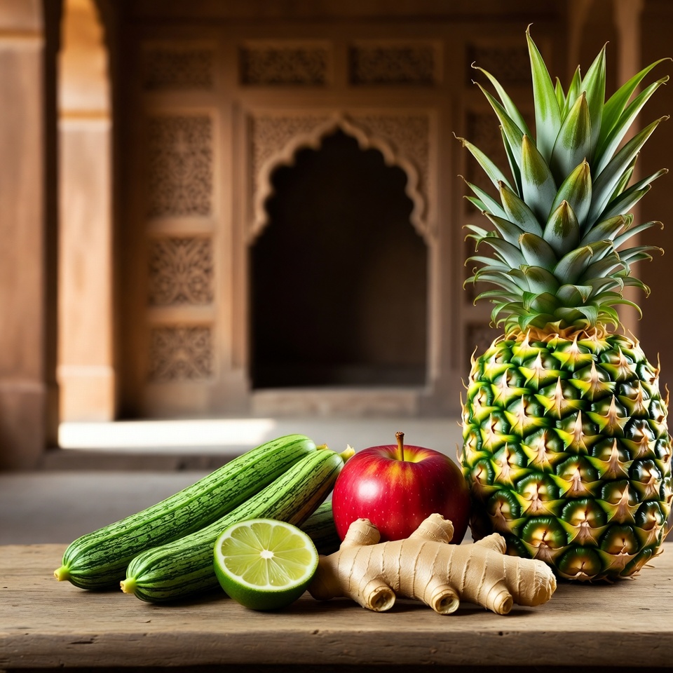 - खीरा, सेब, अनानास और अदरक को छीलकर छोटे टुकड़ों में काट लें।