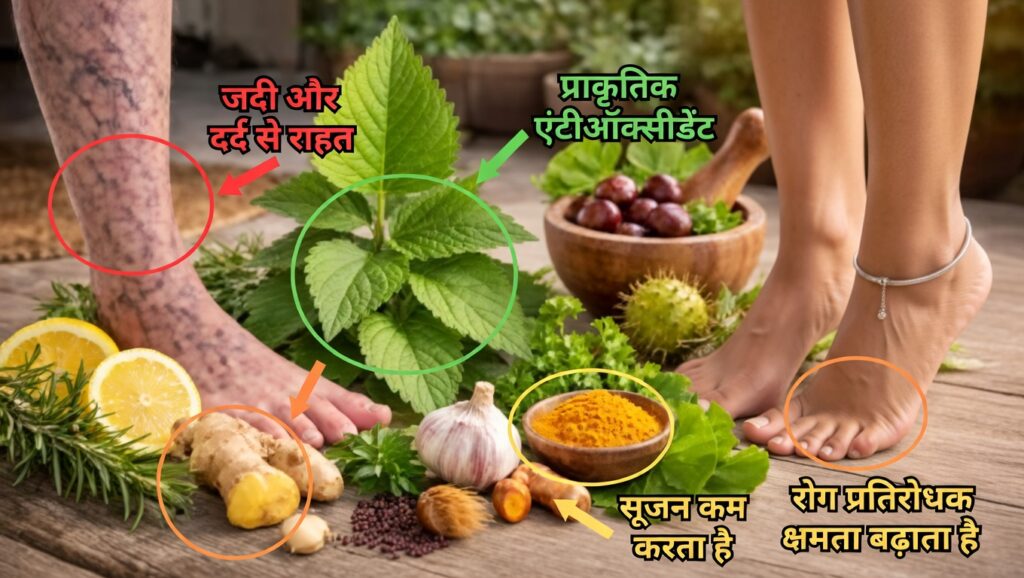 टांगों में रक्त संचार बेहतर करने वाली जड़ी‑बूटियाँ