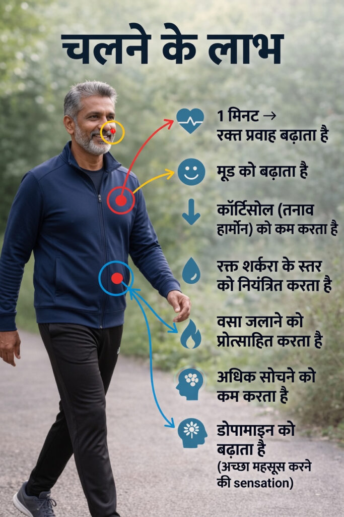 चलने की सबसे बड़ी खूबी यह है कि इसके लाभ समय के साथ बढ़ते जाते हैं। नियमित वॉक केवल उस समय अच्छा महसूस कराने तक सीमित नहीं रहती, बल्कि शरीर पर लंबे समय तक सकारात्मक असर छोड़ती है।
