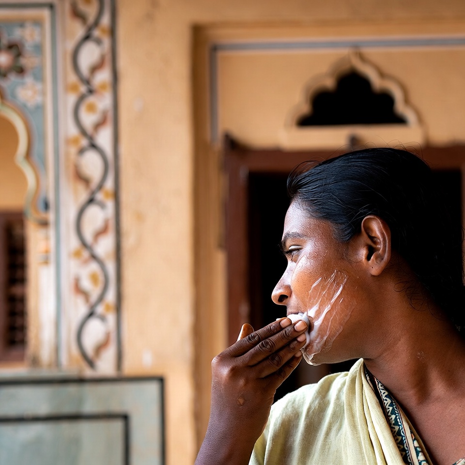 - चेहरे, गर्दन और हाथों पर पतली परत में लगाएँ।