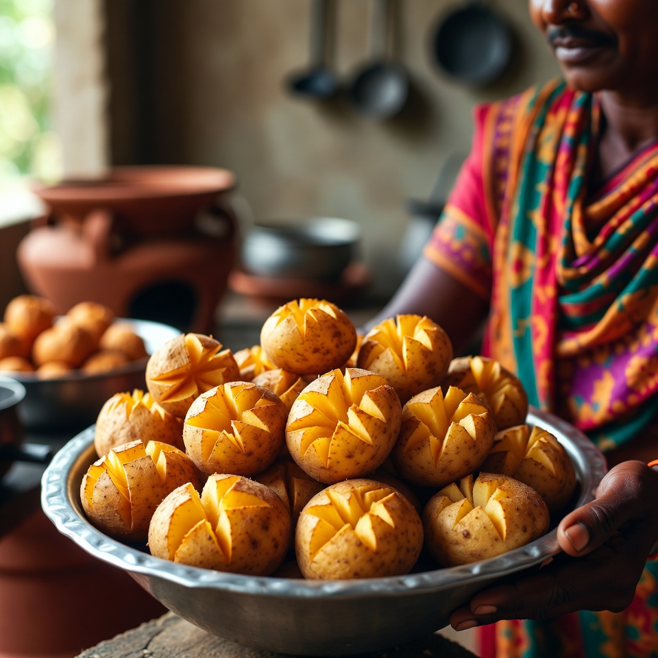 यह सरल और स्वादिष्ट बेक्ड आलू रेसिपी बाहर से सुनहरी और कुरकुरी, जबकि अंदर से मुलायम और नरम बनती है। ऊपर की सतह पर हल्के कट लगाने से मसाला आलू के भीतर तक पहुंचता है, जिससे हर बाइट में बेहतरीन स्वाद मिलता है। यह रेसिपी घर पर जल्दी बनने वाले स्नैक, साइड डिश या हल्के भोजन के लिए शानदार विकल्प है।