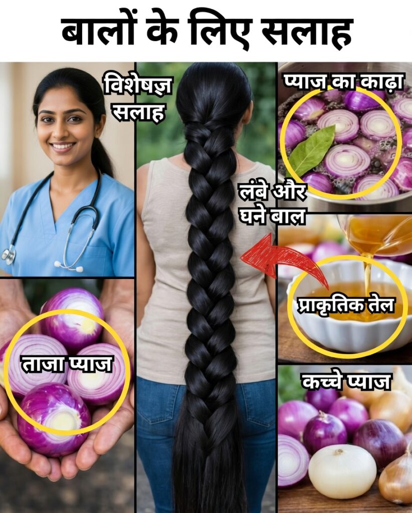 प्याज में सल्फर यौगिक भरपूर पाए जाते हैं, जो केराटिन के निर्माण में मदद करते हैं – वही प्रोटीन जो बालों की संरचना की रीढ़ मानी जाती है।