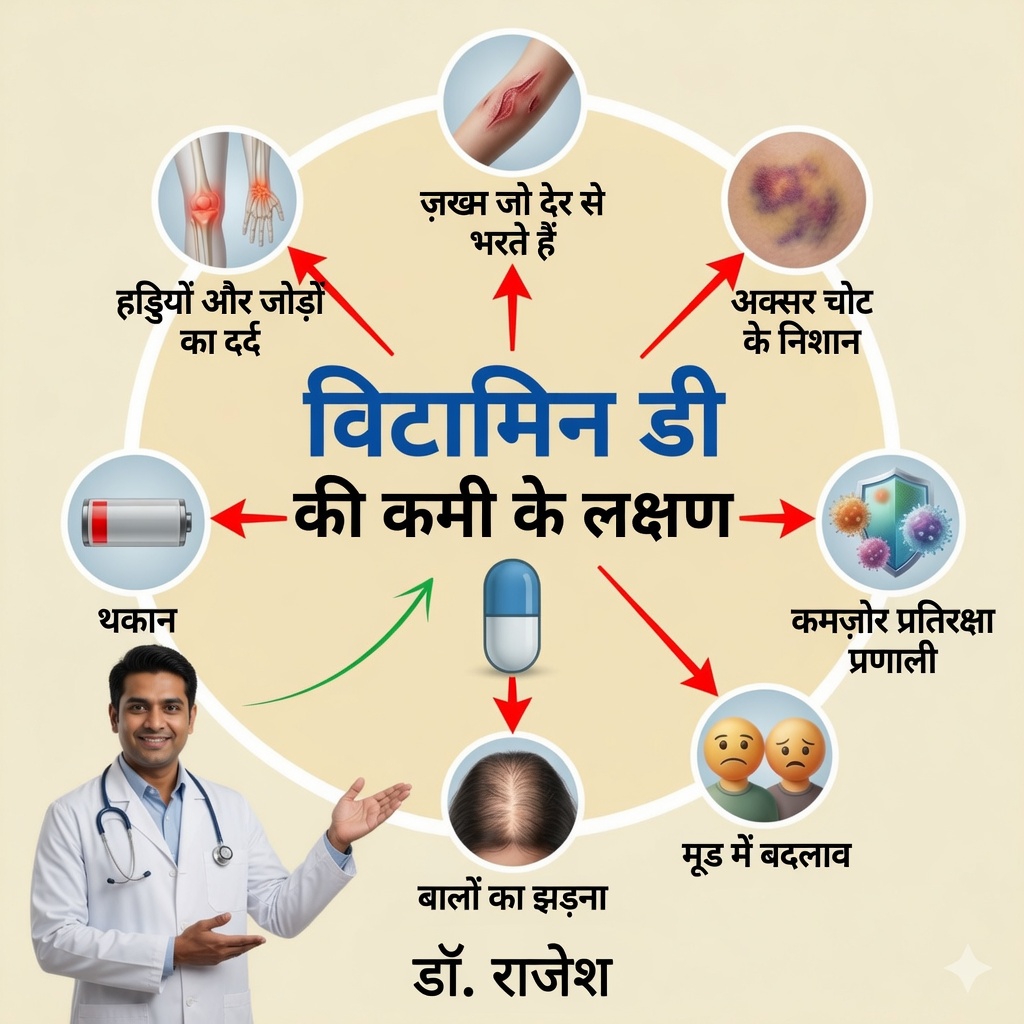 विटामिन D शरीर के लिए बेहद महत्वपूर्ण है। यह कैल्शियम के अवशोषण में मदद करता है, प्रतिरक्षा तंत्र को मजबूत बनाता है, मांसपेशियों को सहारा देता है और मूड पर भी असर डालता है। जब शरीर में इसकी मात्रा कम हो जाती है, तो कई संकेत दिखाई देने लगते हैं जिन्हें नजरअंदाज नहीं करना चाहिए।